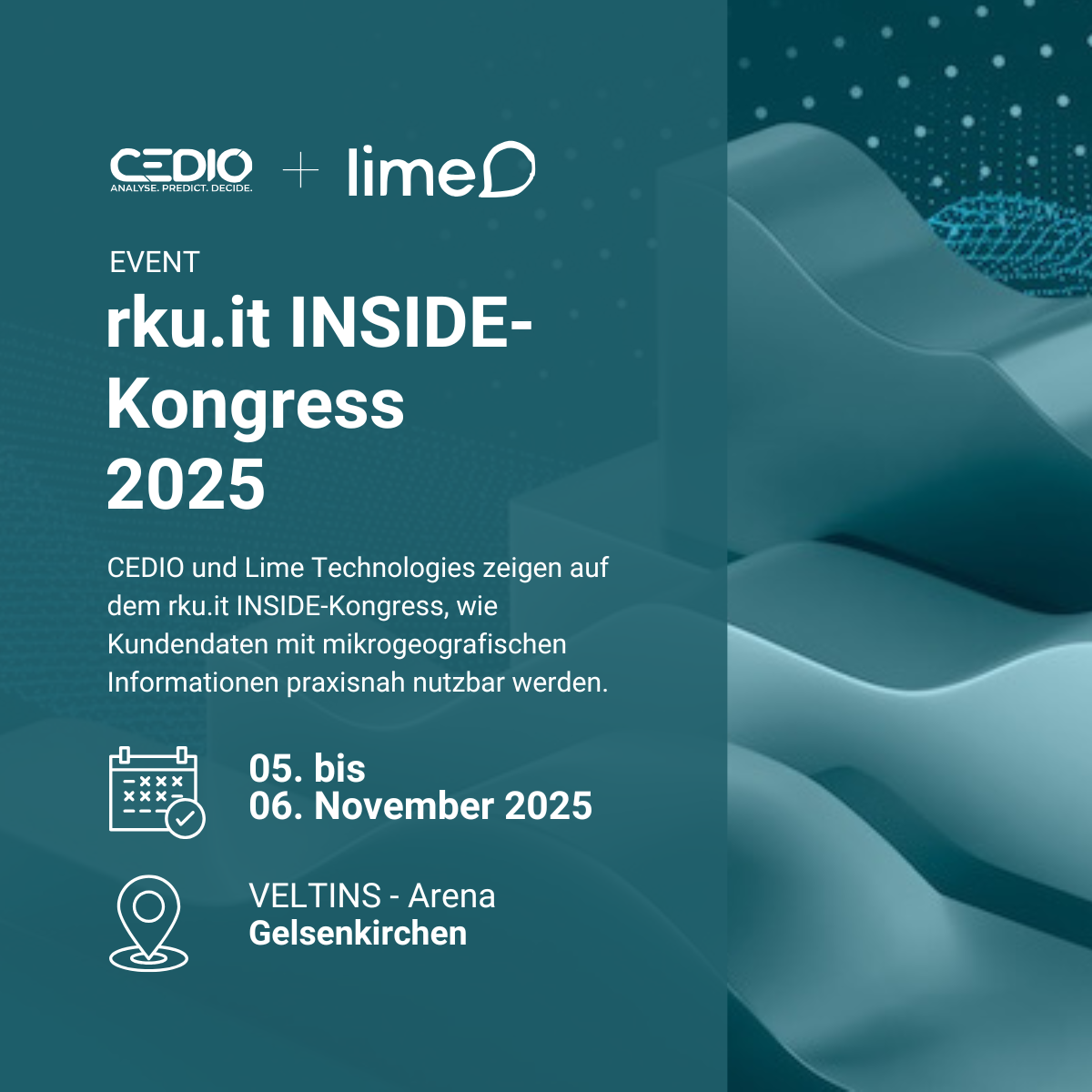 Daten sind langweilig? Ganz im Gegenteil! Triff uns auf Messen und Events, wo wir die Faszination der Daten zum Leben erwecken. Erfahre, wie spannend und innovativ Data Analytics und Business Intelligence sein können: Komm vorbei, triff unser Team live und entdecke die Welt von CEDIO.